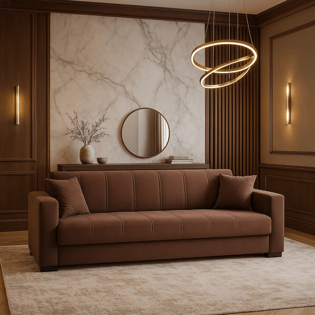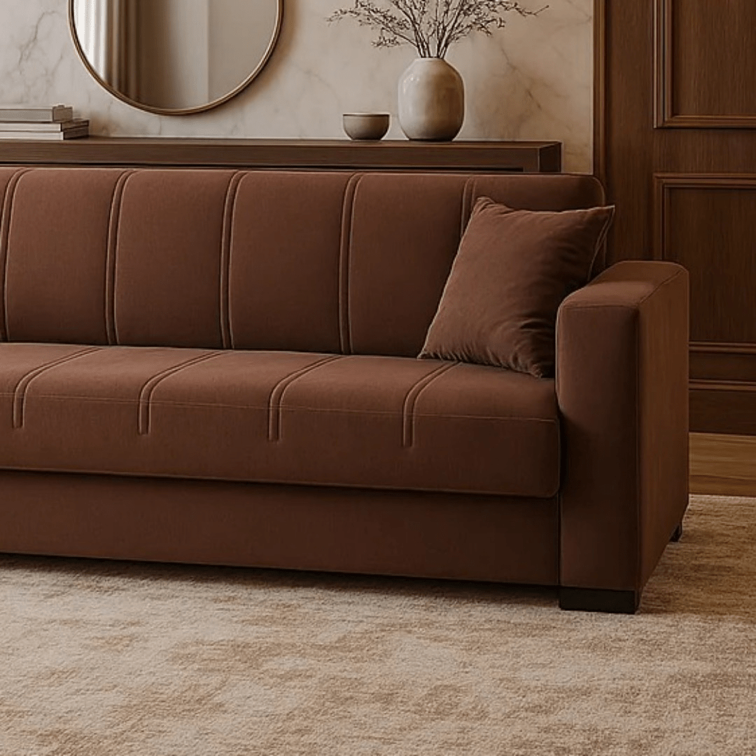 Canapea extensibila cu spatiu depozitare Agnes catifea maro