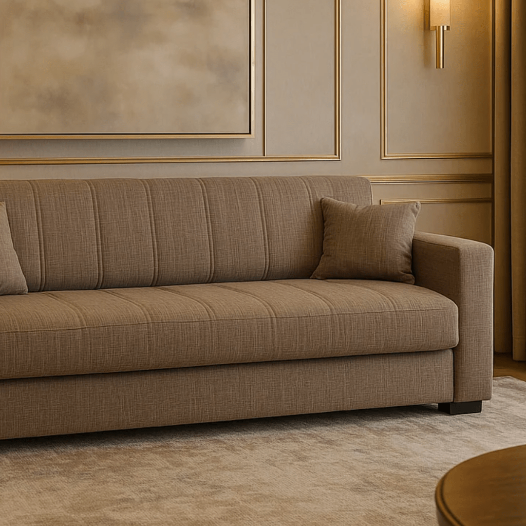 Canapea extensibila cu spatiu depozitare Agnes tesatura Maro Melange