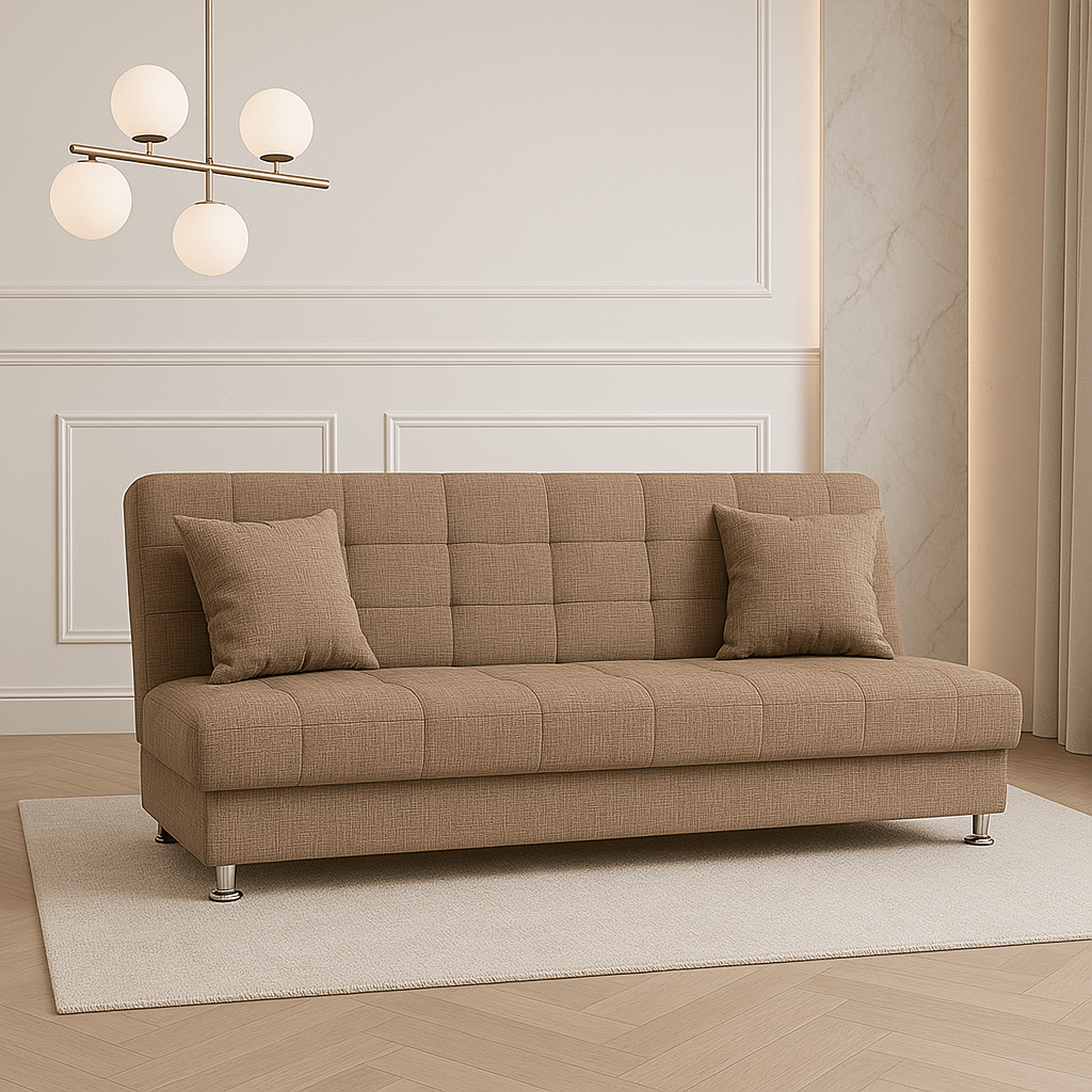 Canapea extensibila cu spatiu depozitare Alma tesatura Maro Melange